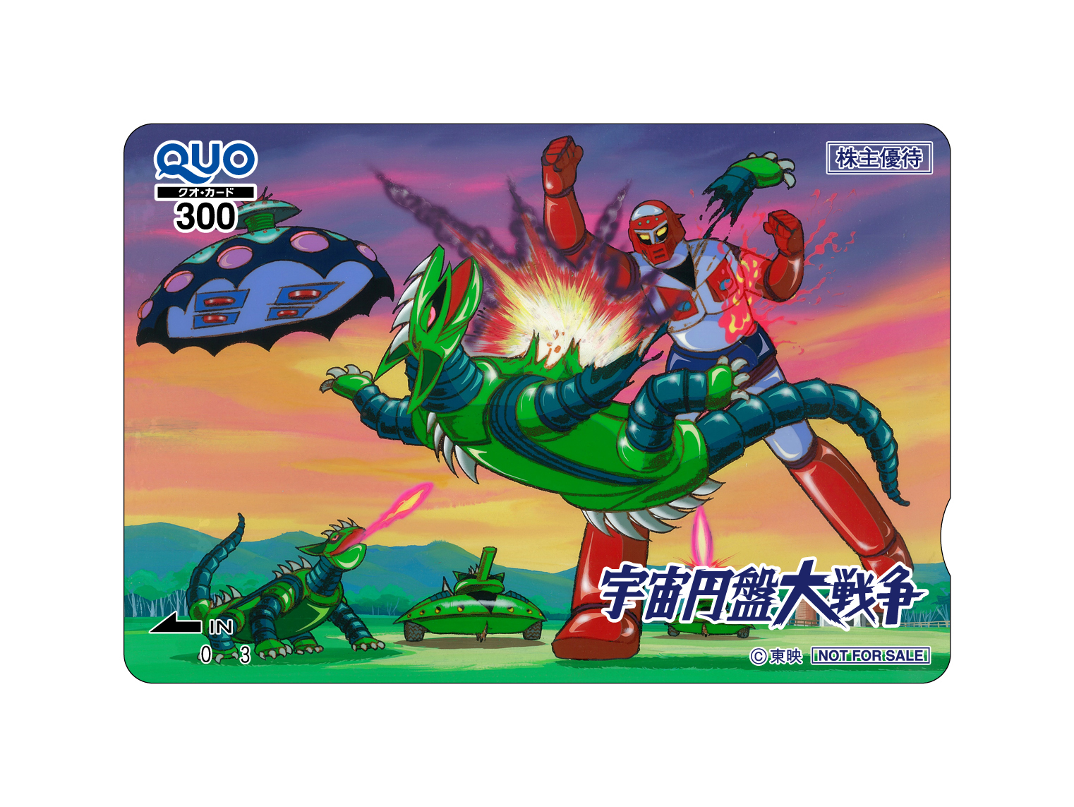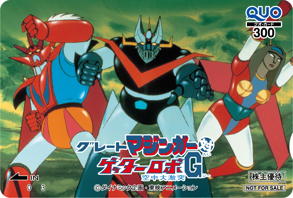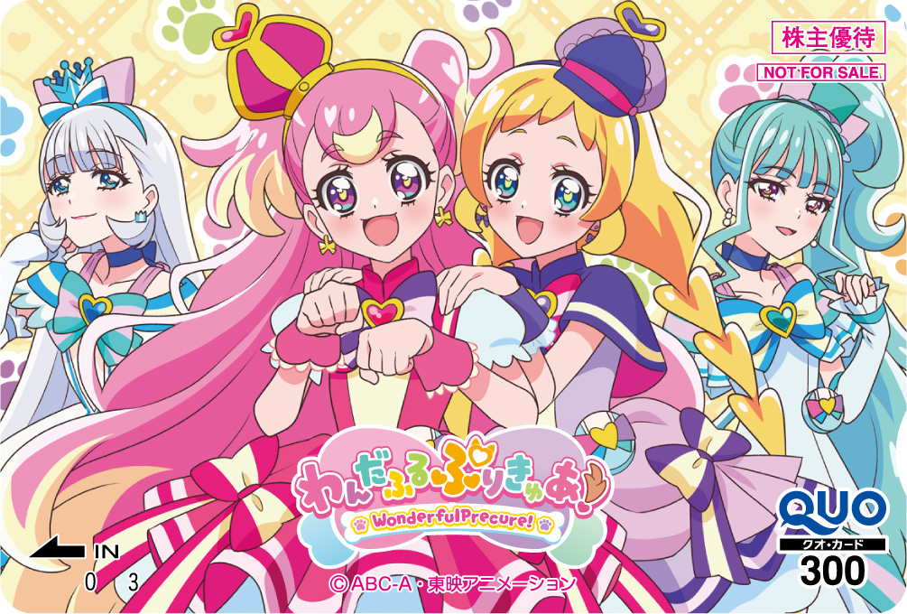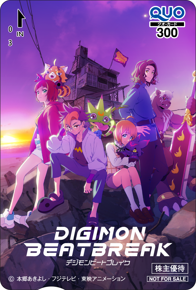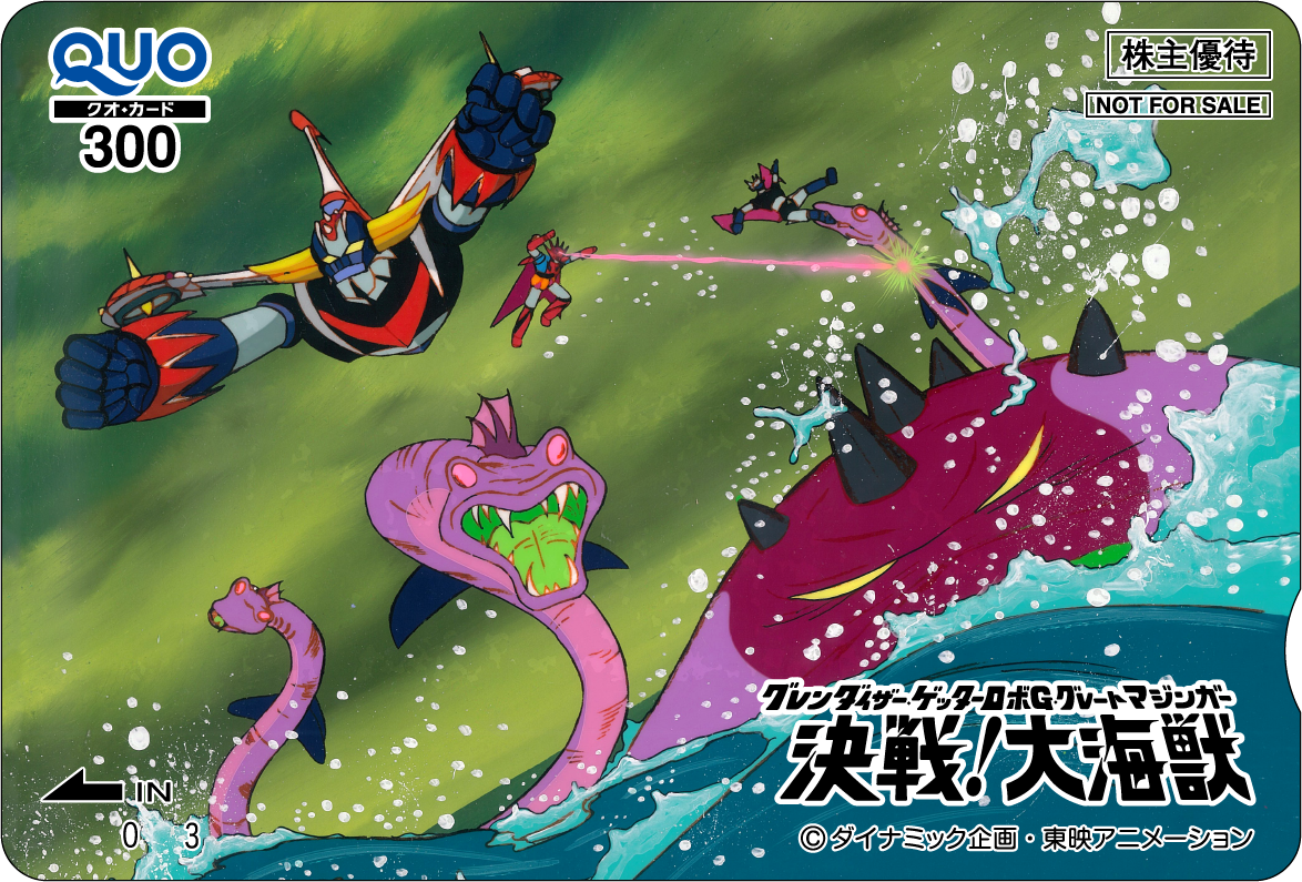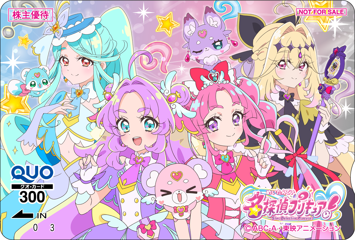 2026年3月期株主優待限定キャラクターQUOカードは、新作から『名探偵プリキュア!』と『DIGIMON BEATBREAK』、名作から『原始少年リュウ』と『グレンダイザー・ゲッターロボG・グレートマジンガー決戦!大海獣』に決まりました。
